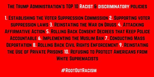 Do not lose sight of the fact that this administration is putting discrimination into federal policy. #RootOutRacismpic.twitter.com/Lh7ETEvzkR