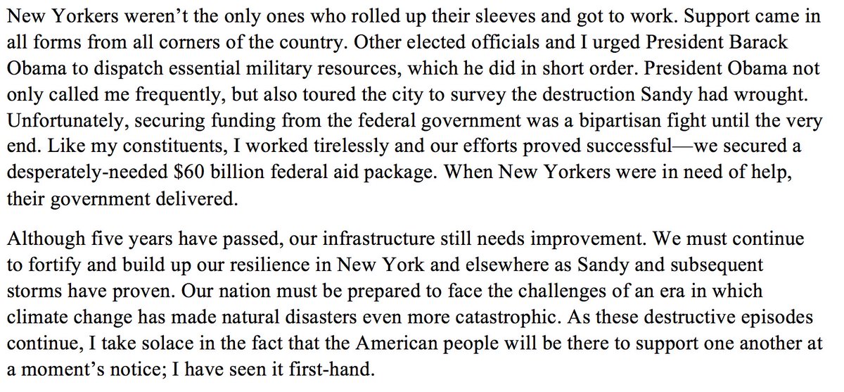 "It is hard to believe that five years have passed since Superstorm Sandy swept ashore, pummeling New York City..."pic.twitter.com/FPDLkrISyP