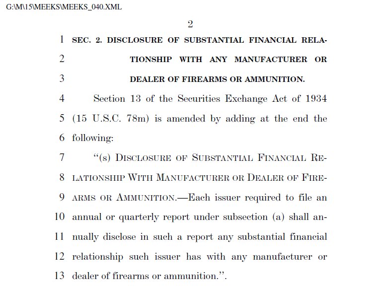 I just introduced H.R. 5106, a bill that would require public companies to disclose substantial financial relationships with gun manufacturers and dealers. Investors have a right to know if their investment portfolio represents their values. http://bit.ly/2EZOFJv  pic.twitter.com/LUe9pYihyS