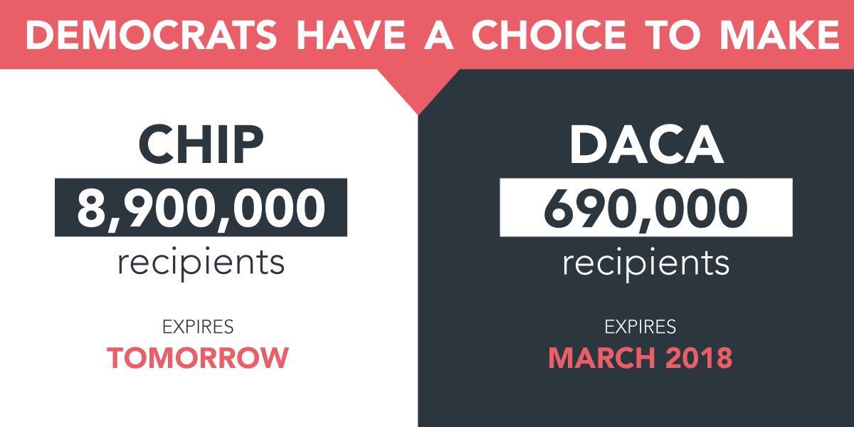 CHIP expired over 100 days ago - you failed to do anything. Then forced DACA into peril. No CHIP funding and No DACA solution = NO Continuing Resolution