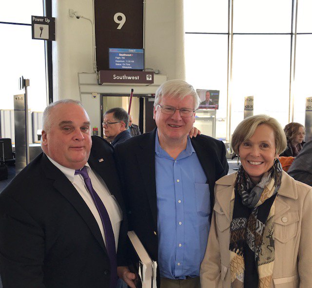 Can't complain when @SouthwestAir's flight is early. Took a quick photo with @RepGrothman, @WCBizAlliance Suzanne Kelly and Jim Pugh. #WIDCFlyIn pic.twitter.com/EO0SNDZJlb