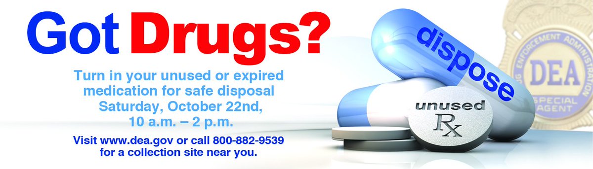 Today is National Drug Take Back Day. Safe disposal of unused/expired meds is free, anonymous, & reduces the risk of prescription drug abusepic.twitter.com/kumLxobG3D