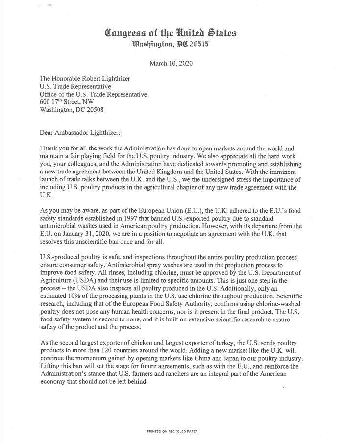 Great - so that in addition to Covid19, we can all get the squits thanks to the poor standards in the US poultry industry. Well, matey, you can export your infected chicken but we won't buy it.
