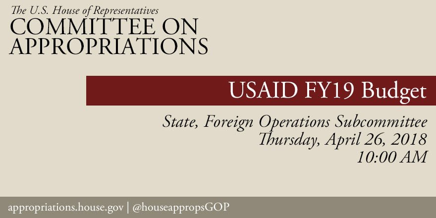 @RepHalRogers chairs a hearing on the FY19 budget for@USAID. https://appropriations.house.gov/calendar/eventsingle.aspx?EventID=395259 …pic.twitter.com/kTnJYj367X