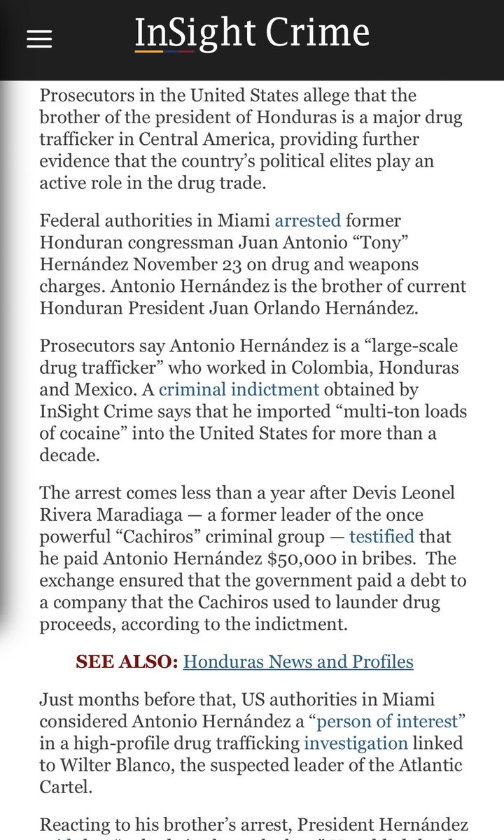 To make things even worse, today Honduras Dictator arrested anti corruption Journalist for disclosing his extensive & multimillion $ Corruption Scheme that has been draining every possible Govt Area for personal gain. Associates: his fam incl his Narco bro #TH IN#USA jail