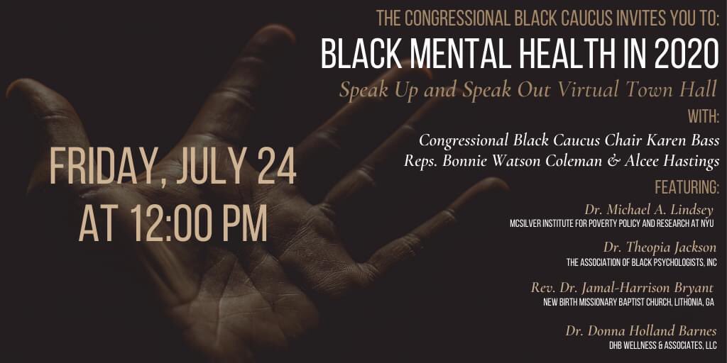 .@TheBlackCaucus looking forward to joining my colleagues and friends for the "Black Mental Health in 2020" virtual town hall tomorrow at 12PM ET.