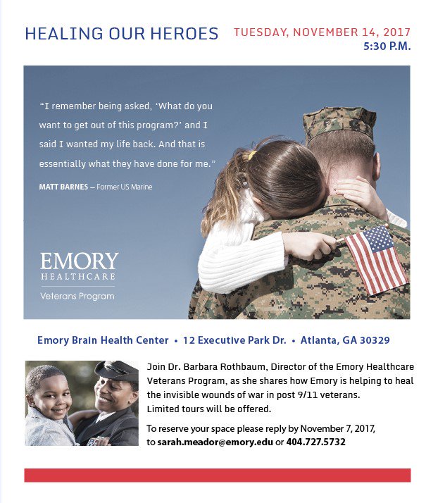 The Emory Healthcare Veterans Program offers post-9/11 veterans expert and collaborative care to help heal the invisible wounds of war.pic.twitter.com/qHCHW1z0gw