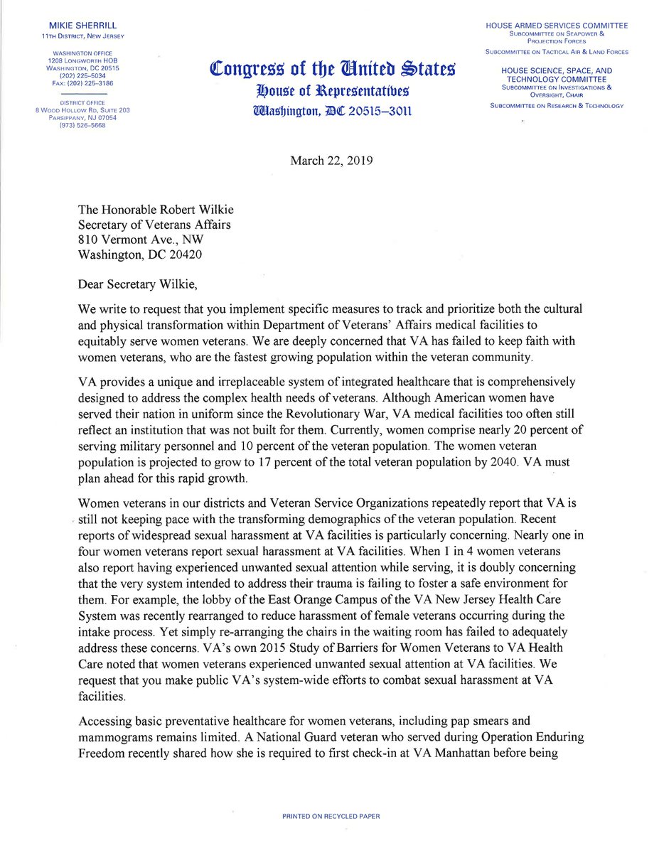 Proud to sign this letter. As a woman vet, I understand the unique challenges we face. I look forward to working with my colleagues on ensuring that our women vets receive equitable care.https://twitter.com/RepSherrill/status/1109168544003121153 …