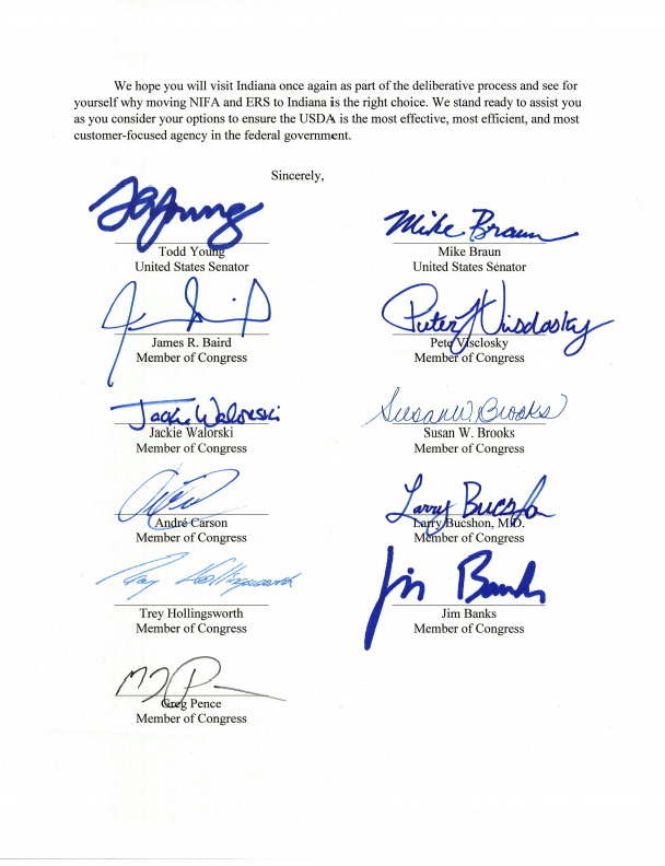 Agriculture is part of our DNA in The Hoosier State and it is the backbone of our economy. I’m very proud to lead this letter, along with the entire Indiana delegation, to @SecretarySonny endorsing our home state's bid to host some of @USDA’s finest institutions.pic.twitter.com/kEIrDqZ7wH