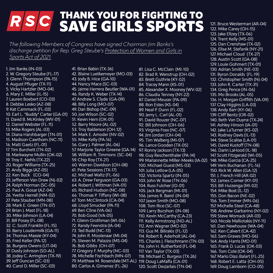 @RepJimBanks's discharge petition supporting@RepGregSteube's legislation to#SaveGirlsSports!pic.twitter.com/SAInJg4KZH