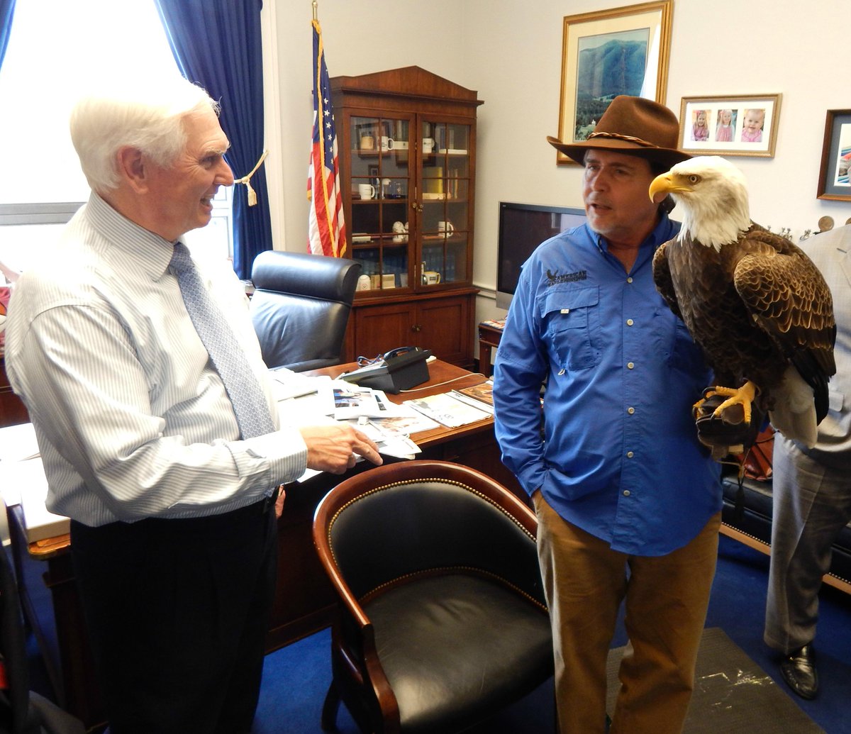 Thanks Al Cecere from the American Eagle Foundation for bringing #ChallengerTheEagle by for a surprise visit!pic.twitter.com/546pjF9bN4