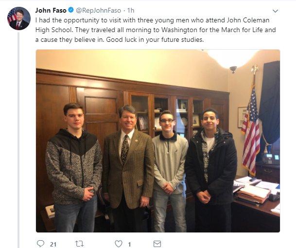 @RepJohnFaso with teenage boys from a private school, who don't believe women should make health care decisions with their doctor, while ignoring the Women's March. As a woman in#ny19, I don't feel represented. Not even an open town hall.pic.twitter.com/FbiubVVFWh