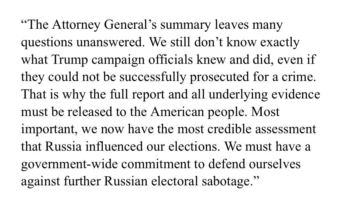 Bottom line - Mueller had 22 months to try to exonerate Trump for obstruction and couldn't do it. Barr's "weekend at Donnies" COVER letter may be just that - we need to see the ENTIRE REPORT.