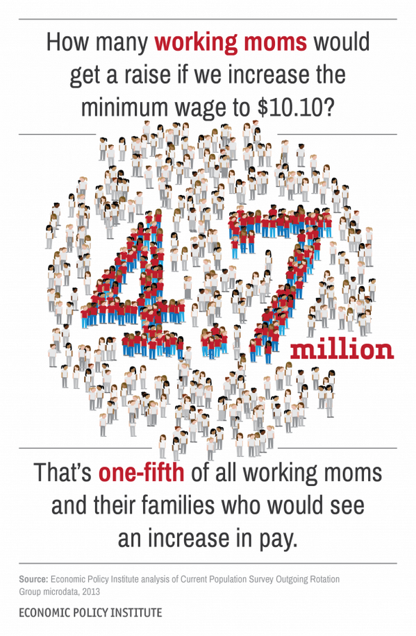 RT @RepCheri: Nearly 2/3 of minimum wage workers are women. Raising min wage would help millions of working momspic.twitter.com/rb1nv8wwDS