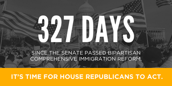 It’s been 327 days since the Senate approved bipartisan #immigration reform. @SpeakerBoehner, the #TimeIsNow to vote.pic.twitter.com/g4p9L645pZ