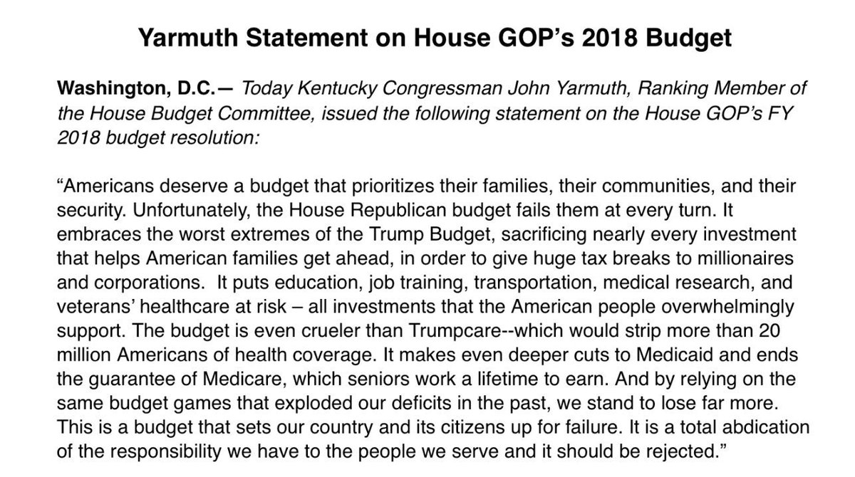 My statement on the FY18 #GOPbudget:pic.twitter.com/bMOEueArVc