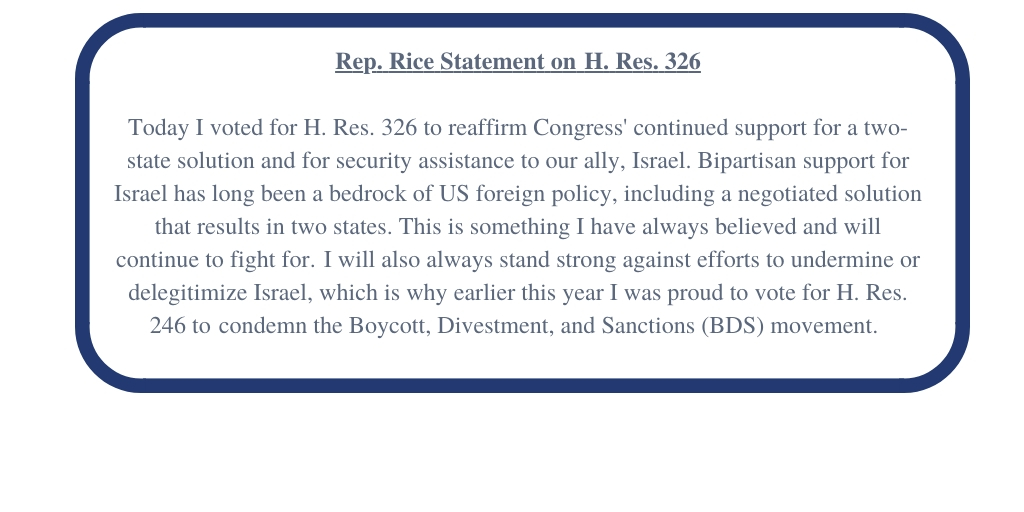 Today I was proud to support H. Res. 326 expressing the House's support for the two-state solution. Read my full statement:pic.twitter.com/bWkIJ01SKV