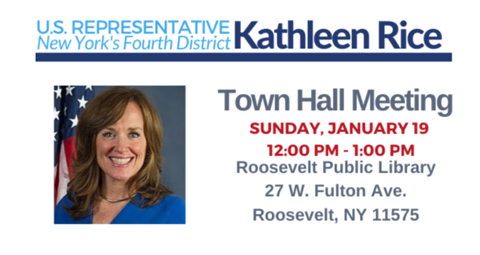 I'm hosting a town hall meeting for #NY04 constituents on Sunday, January 19 at 12:00 PM at the Roosevelt Public Library.