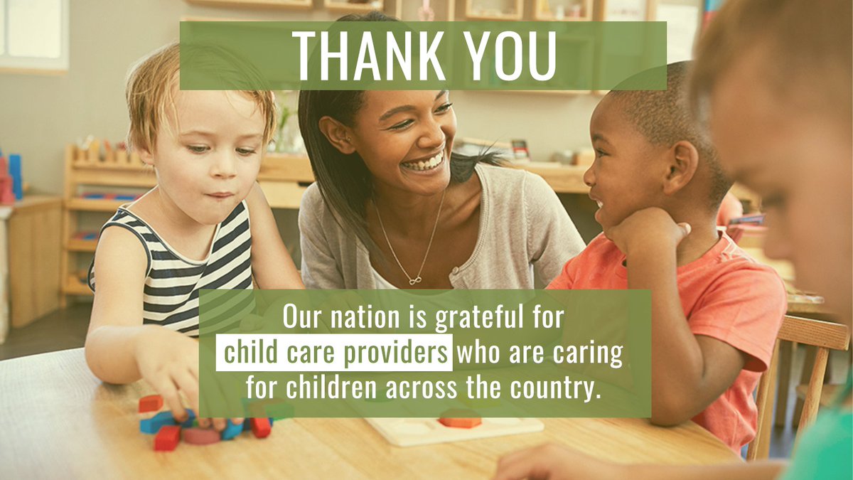 Thank you to the child care providers for making sure our children are safe and secure. Your work is more important than ever!pic.twitter.com/k1MQAKPwMk