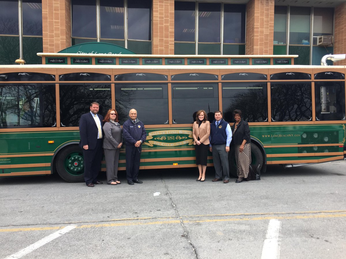Kathleen in #LongBeach unveiling a new federally-funded trolley, 1 of 8 vehicles replaced after #Sandy. #NY04pic.twitter.com/YOTgID3okM