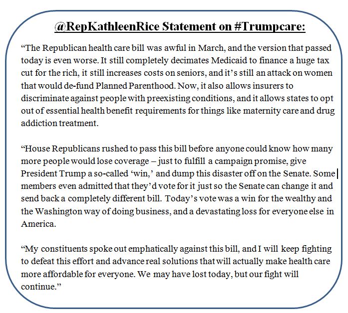 Thank you. Glad I'm in your district and not King's or Zeldin's.
