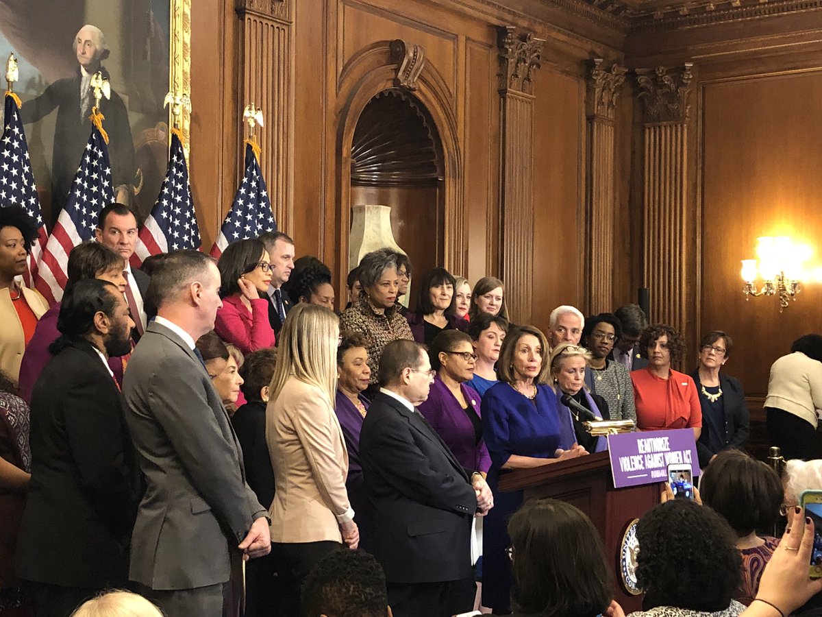 I was proud to stand today with survivors, service providers and women and men from both sides of the aisle to introduce the Violence Against Women Act reauthorization. There is nothing partisan about protecting women. #VAWA19pic.twitter.com/bZLupu7OYF