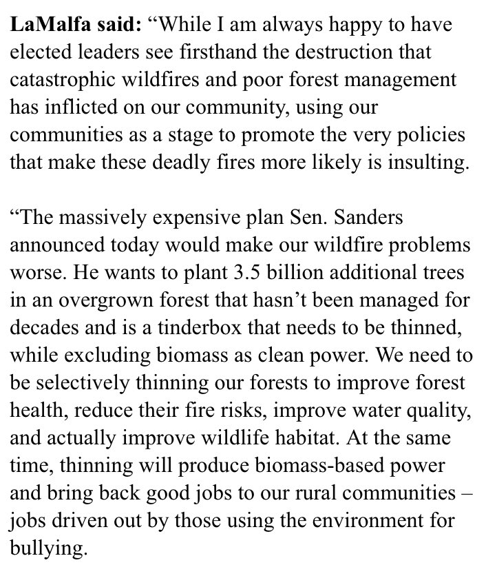 If thinning means clear cutting you are lying about it teducing fire come see my neighbors. Land that was “thinned” 20 years ago it’s a tinder box. Yes good forest management is needed.. gop exploitation is not