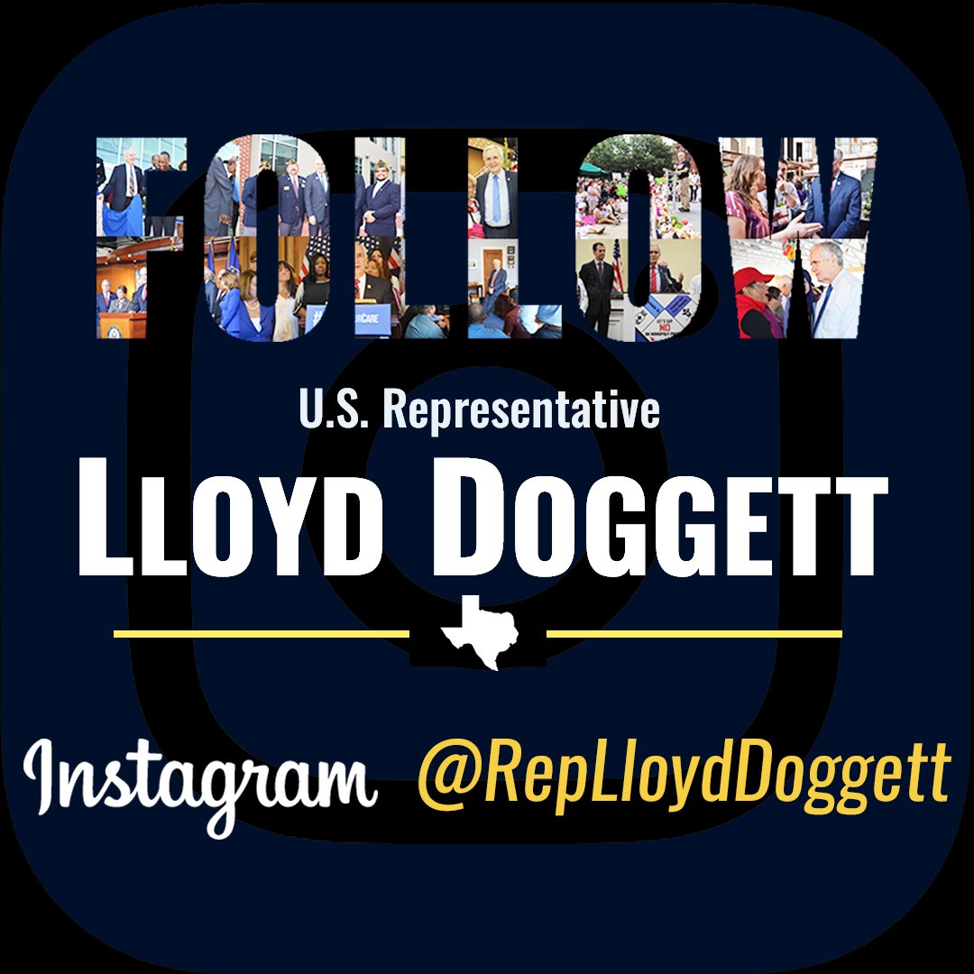 To stay up-to-date with my work in San Antonio, Austin & surroundings as well as Washington D.C., follow me on Instagram @RepLloydDoggett: https://www.instagram.com/replloyddoggett/ …pic.twitter.com/5oax0uCmp0