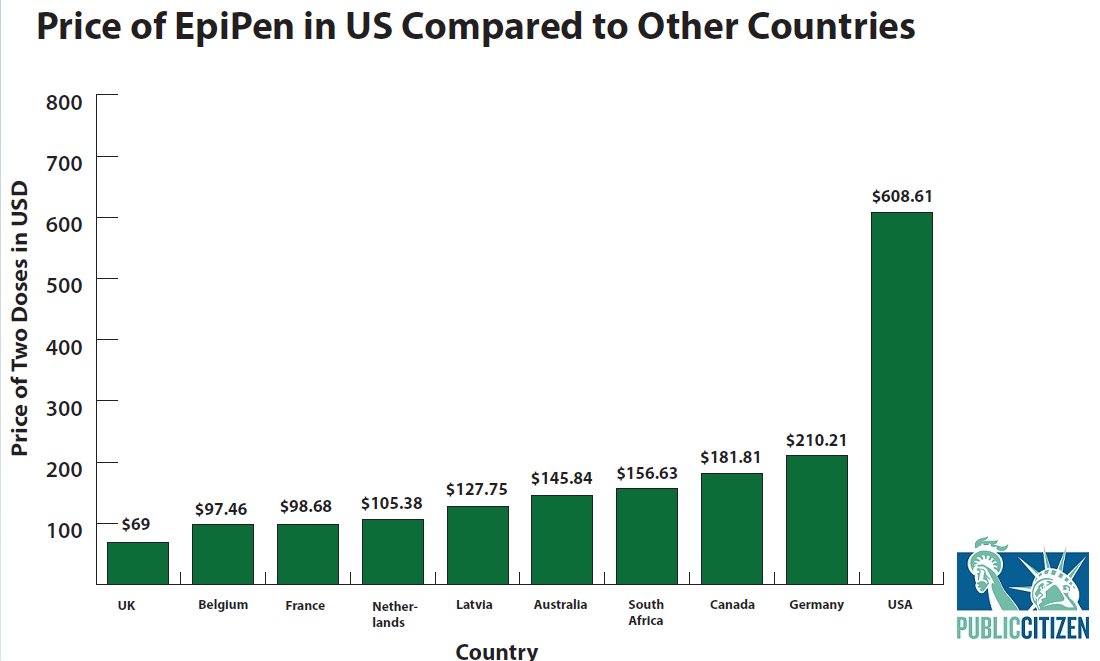 Many Americans unfairly charged 3x more for #EpiPens than people in other developed countries (via @Public_Citizen)pic.twitter.com/hO7vz8WhSm