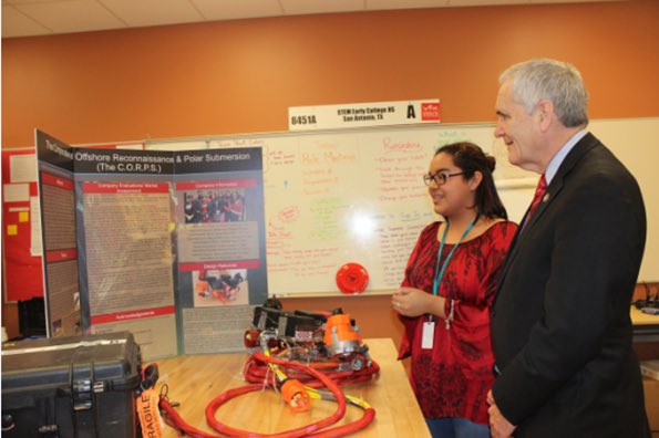 I presented Harlandale STEM Early College teacher Paula Dolloff with the @HumanitiesTexas 2017 Outstanding Teaching of the Humanities Award. I was joined by many impressive students and members of the Harlandale ISD board.pic.twitter.com/dCfcagVkcr