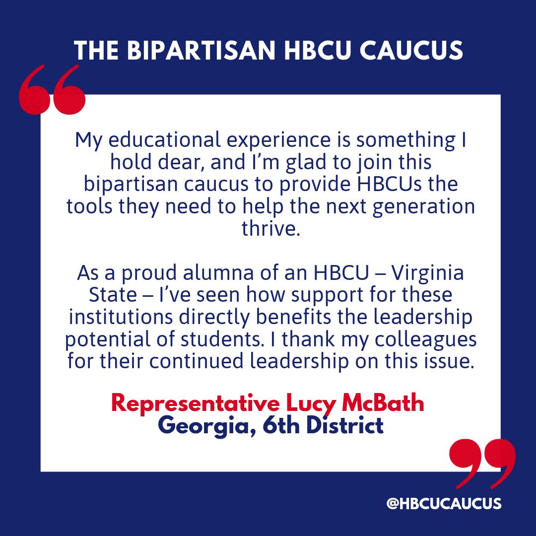 The Bipartisan @HBCUCaucus is proud to welcome @RepLucyMcBath to the Caucus! #HBCUStrong pic.twitter.com/kQVfulvN4u