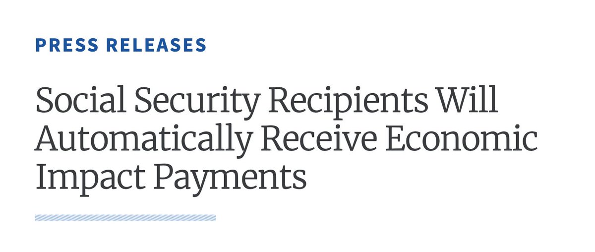 The @USTreasury Department confirmed last week that Social Security beneficiaries will NOT need to file an abbreviated tax return in order to receive payment. For those concerned about the impact payments, you can find more information here: https://home.treasury.gov/news/press-releases/sm967 …pic.twitter.com/20dqJE2D3R