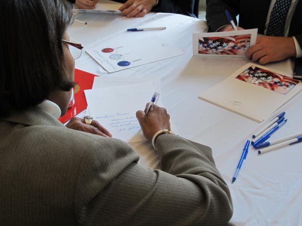Signing holiday cards for wounded service men and women, as well as active soldiers currently overseas @RedCrosspic.twitter.com/uZF9bLdG