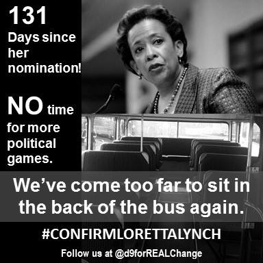 .@RepMarciaFudge We've come 2 far 2 let Loretta sit in the back of the bus @SenatorDurbin was rt #confirmLorettaLynchpic.twitter.com/ALomGFma3Y