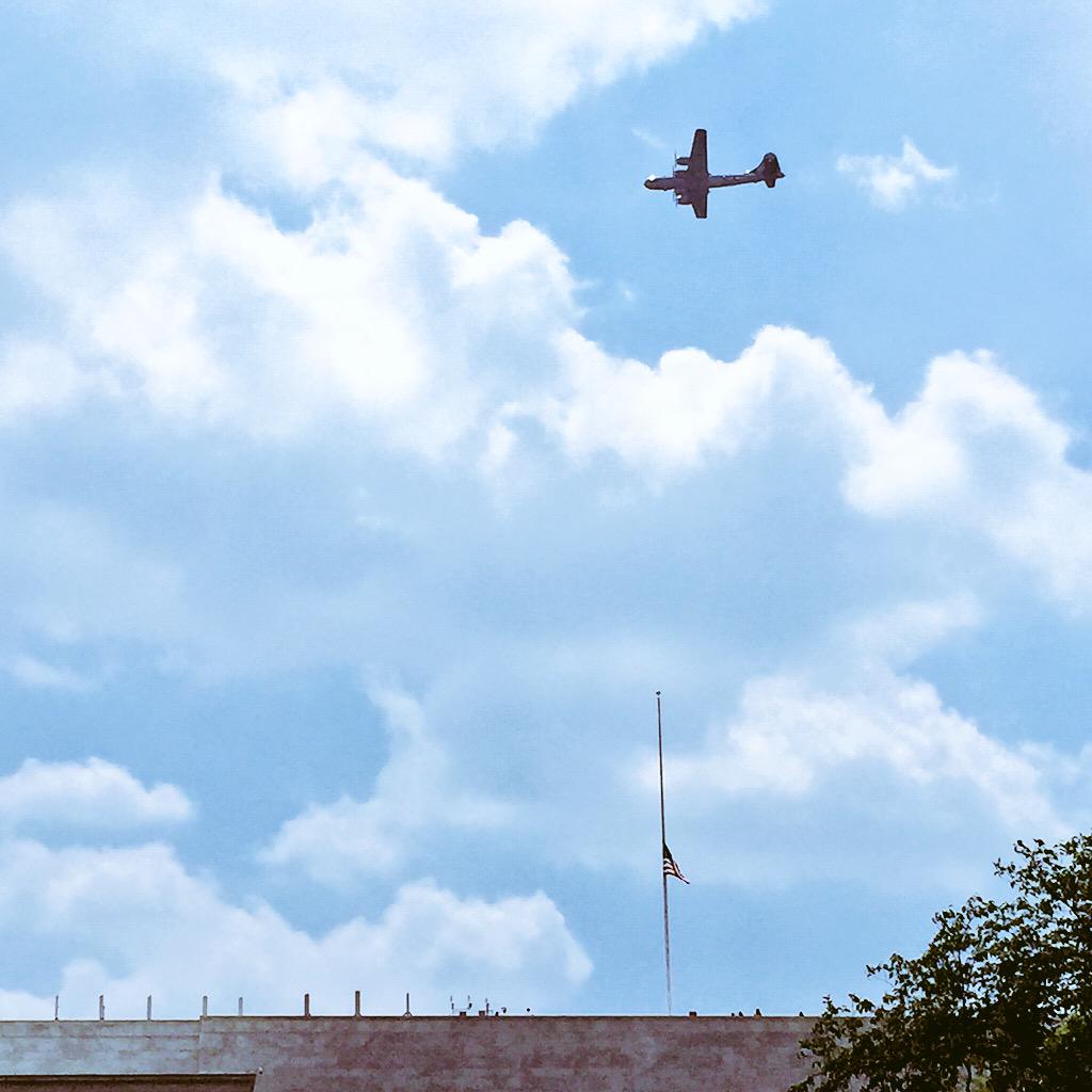 To mark #VEDay70, vintage planes did a #WW2Flyover down the National Mall. Here's the B-29 Superfortress flying high.pic.twitter.com/PGNe1emtjm
