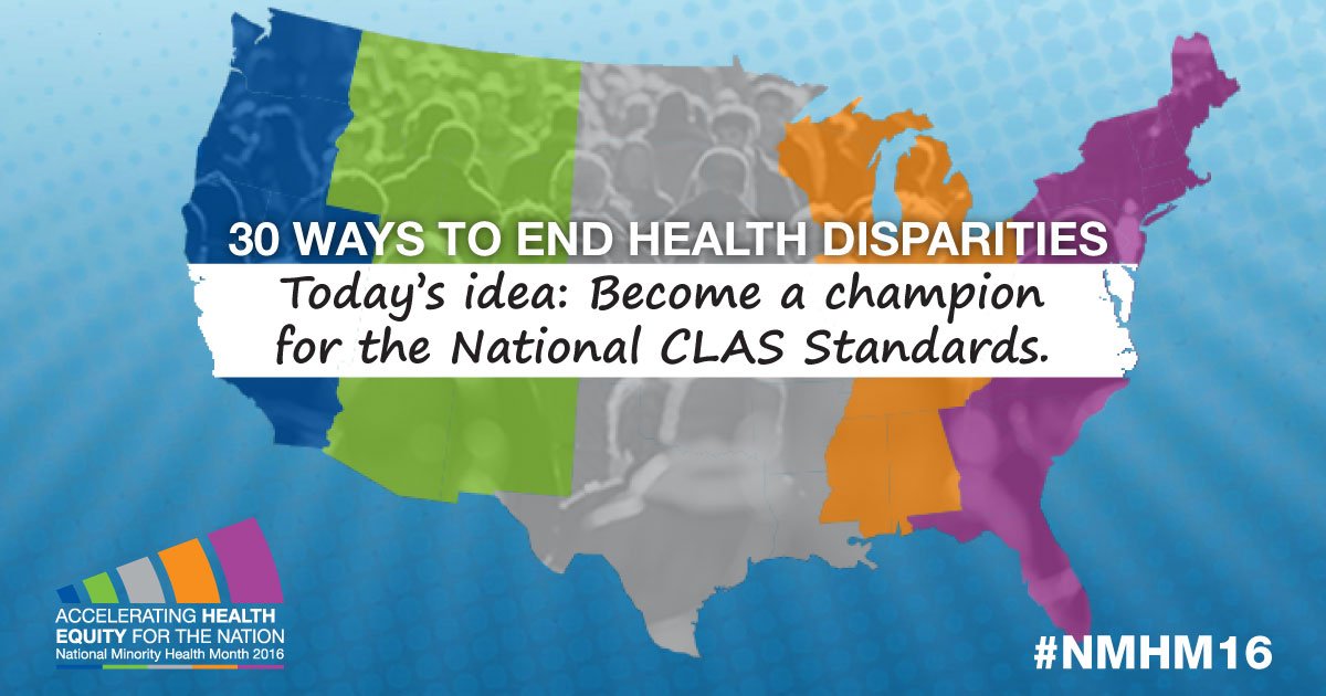 Throughout #NMHM16, we’re sharing 30 ways you can help end health disparities – one for each day! pic.twitter.com/1kSpCFNkTC