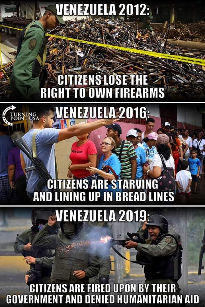 Also, Venezuela literally made the "you flunk History 101" mistake of voting to take ordinary citizens' guns away. "Gun control" doesn't work any better in other countries than it works here, and politicians in both halves of our Duopoly party need to figure that out for once!pic.twitter.com/YJHtHkxQso