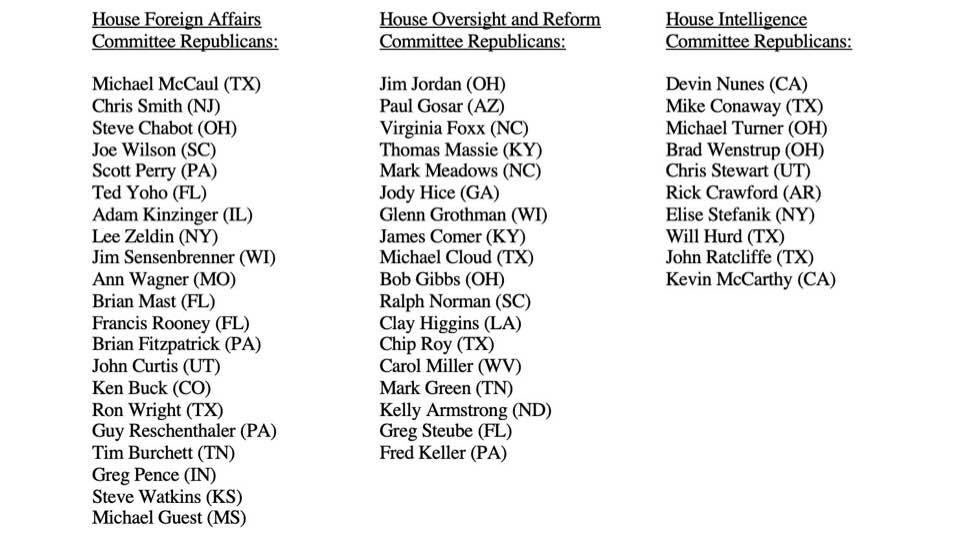 Here is a reference list of all the Republicans on the impeachment committees since I know you think it’s just Dems in there. Say hi to Pence’s brother for me!pic.twitter.com/5H2kxWKaVm