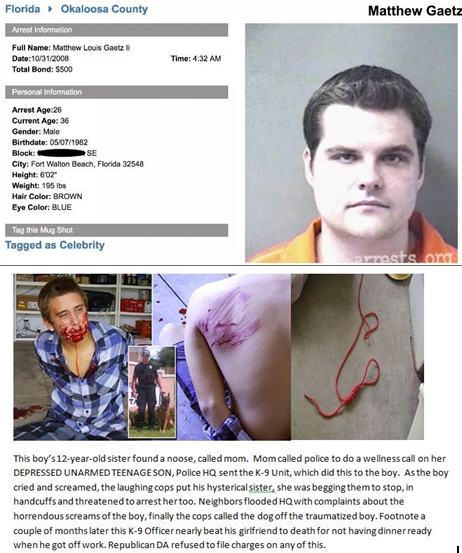 Rep. Gaetz rich Republican Daddy got him out of a lot of trouble growing up with one phone call to the Republican Sheriff, this boy is one of us, so he gets treated differently the Republican Bible Belt "christian" way.pic.twitter.com/dbqi8pLZVr