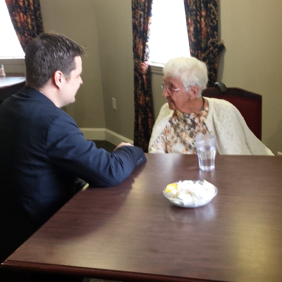 Congressman Gaetz visiting residents at Bob Hope Village. Congressman met Teresa in this photo. # OpenGaetz Daypic.twitter.com/ufP8VEgfDZ