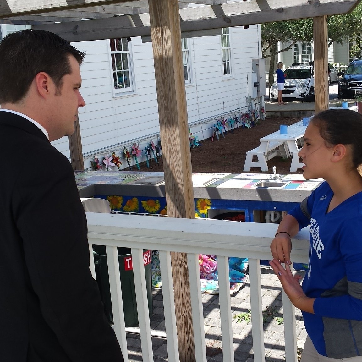Students at Seaside Neighborhood School showing off their outdoor kitchen.
