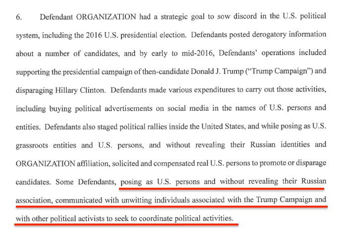Mueller: Russians communicated with individuals associated with the Trump campaign and other political activists to coordinate political activities