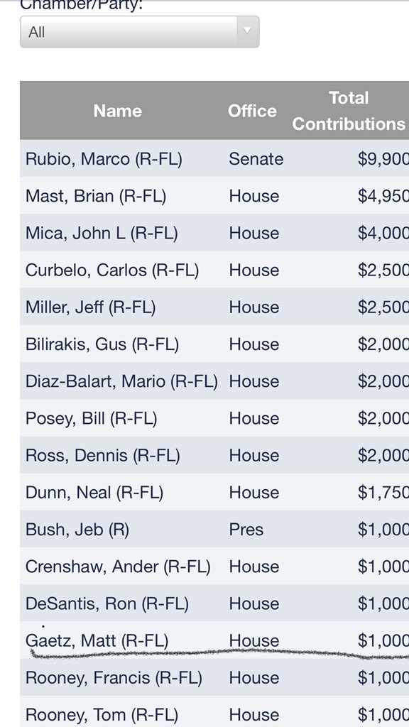 Rep. Matt Gaetz: $1,000 NRA DONATION