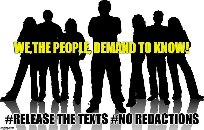 #ReleaseTheTexts#NoRedactions WE DEMAND THEM UNDERACTED!!!pic.twitter.com/TDIaTqka8W