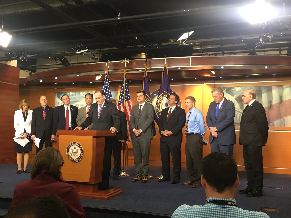 HAPPENING NOW: Joining @RepLeeZeldin, @RepMarkMeadows, @Jim_Jordan, @RepAndyBiggsAZ, and 15 other members to unveil a resolution that details misconduct at the #DOJ.pic.twitter.com/3WrvoxS60y