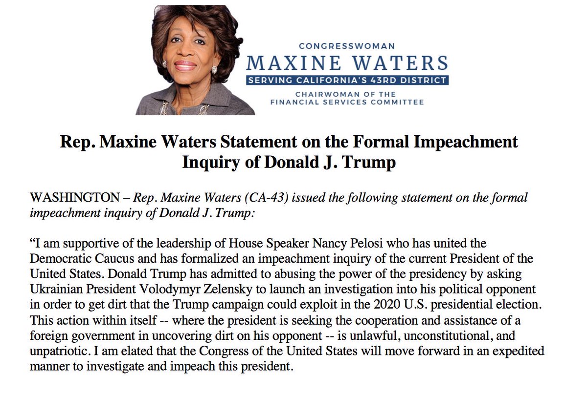 Please read my statement on the formal impeachment inquiry of Donald Trump.
