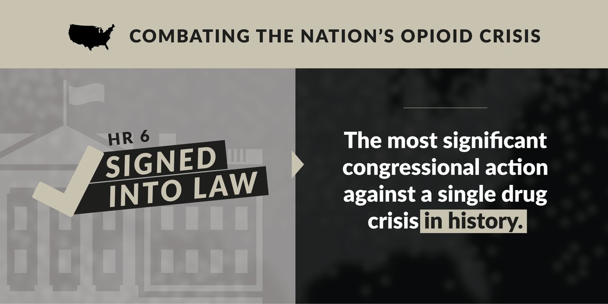 Minutes ago @POTUS signed H.R. 6 the comprehensive, bipartisan opioid package into law. The bill will help expand access to treatment, improve prevention programs, and give law enforcement the tools they need. Simply put, this will save lives.pic.twitter.com/TalU3fwT4d