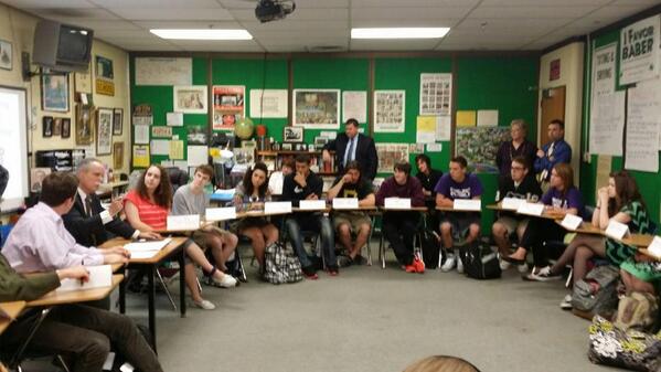 Rep. McKinley talks with students in the AP Government Studies class at Wheeling Park High School on Wednesday.pic.twitter.com/H9lMc164Hx