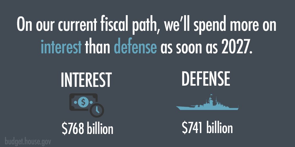 If we do nothing about our debt/deficits, we’ll spend more on interest than #defense by 2027. pic.twitter.com/Fr11EgTUJZ