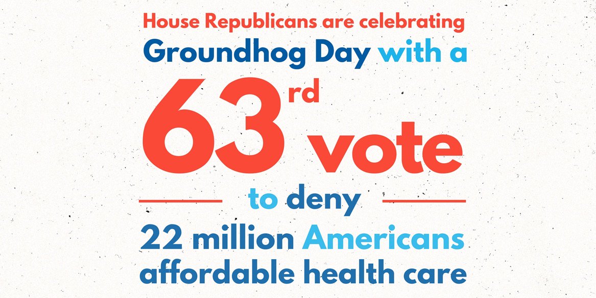 Déjà vu? Its #GroundhogDay & @HouseGOP is voting a 63rd time to deny 22 million Americans affordable healthcare.pic.twitter.com/q9YNvFOpme